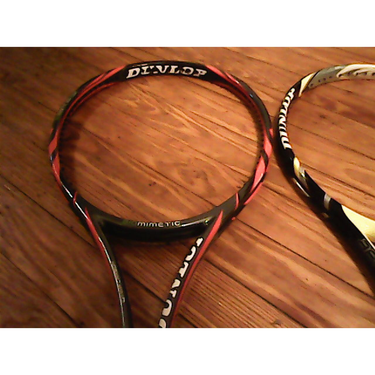 Brand new red and black dunlop biomimetic tennis rackets. needs wrap and stringing.